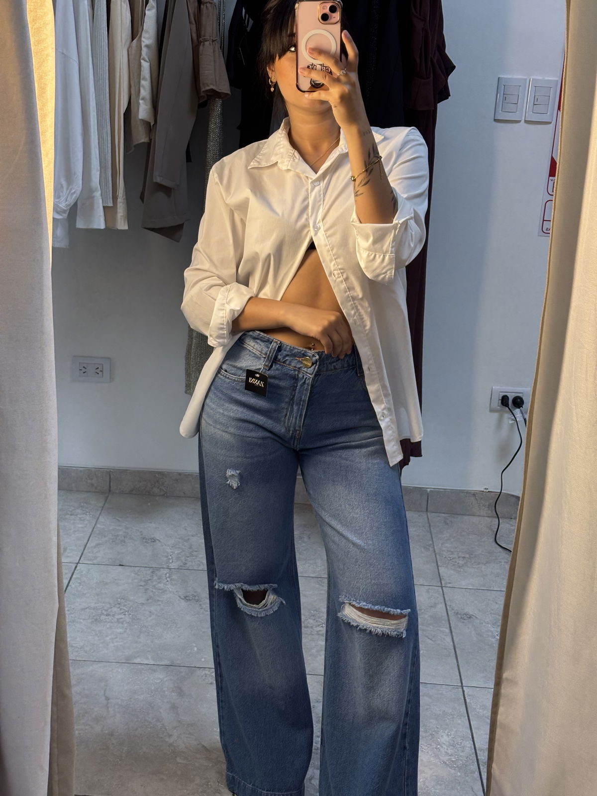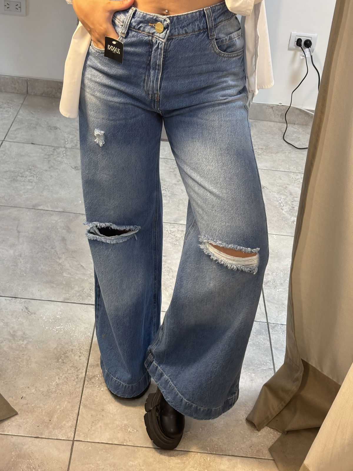 Un infaltable para looks cancheros y con actitud. Este jeans wide leg tiene calce relajado y súper cómodo, con roturas a la altura de las rodillas que le aportan ese toque urbano que levanta cualquier outfit. Ideal para usar tanto de día como de noche.