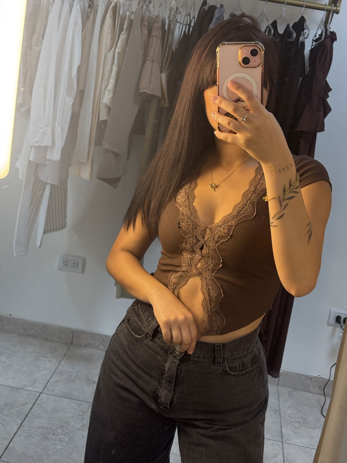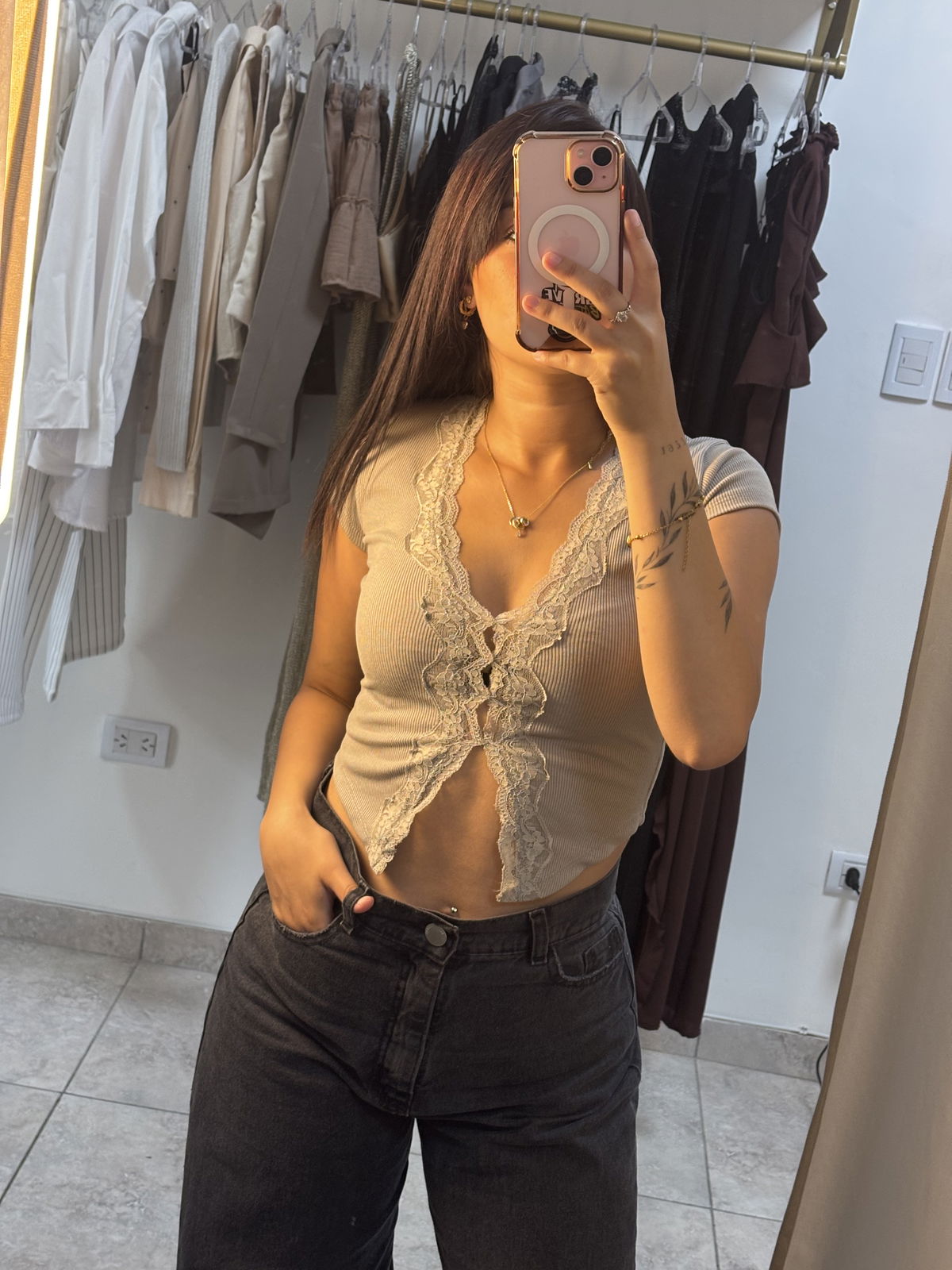 Femenina, cómoda y con un toque delicado. Remera Marine combina la suavidad del morley con un detalle de puntilla en el busto, dándole un estilo romántico y moderno a tus outfits. Ideal para usar sola o combinar con prendas de capa.