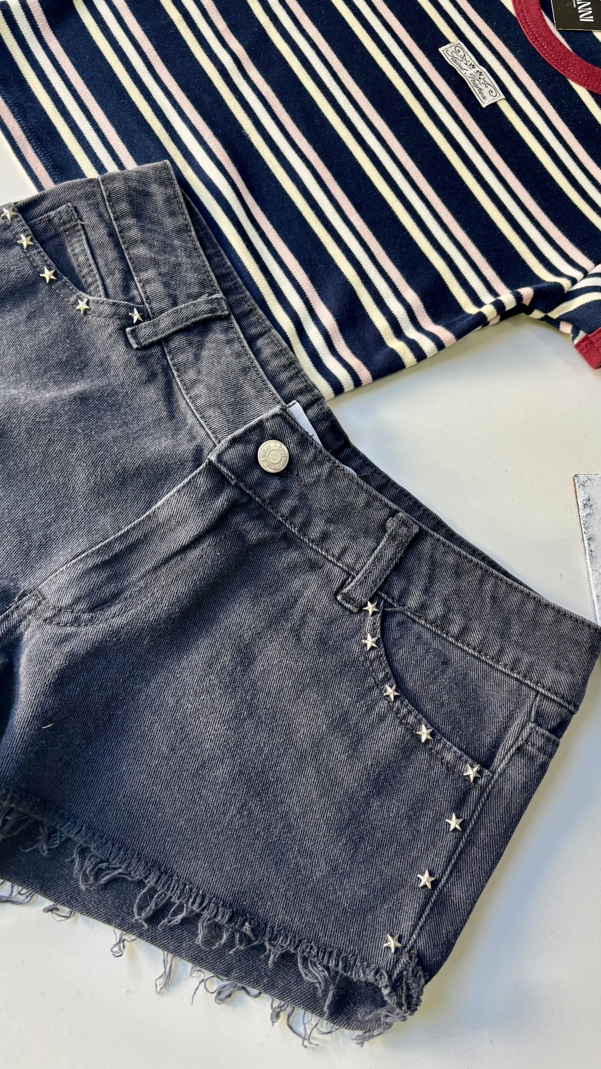 Short Jeans Tiro Medio – Detalle Estrellas en Bolsillos