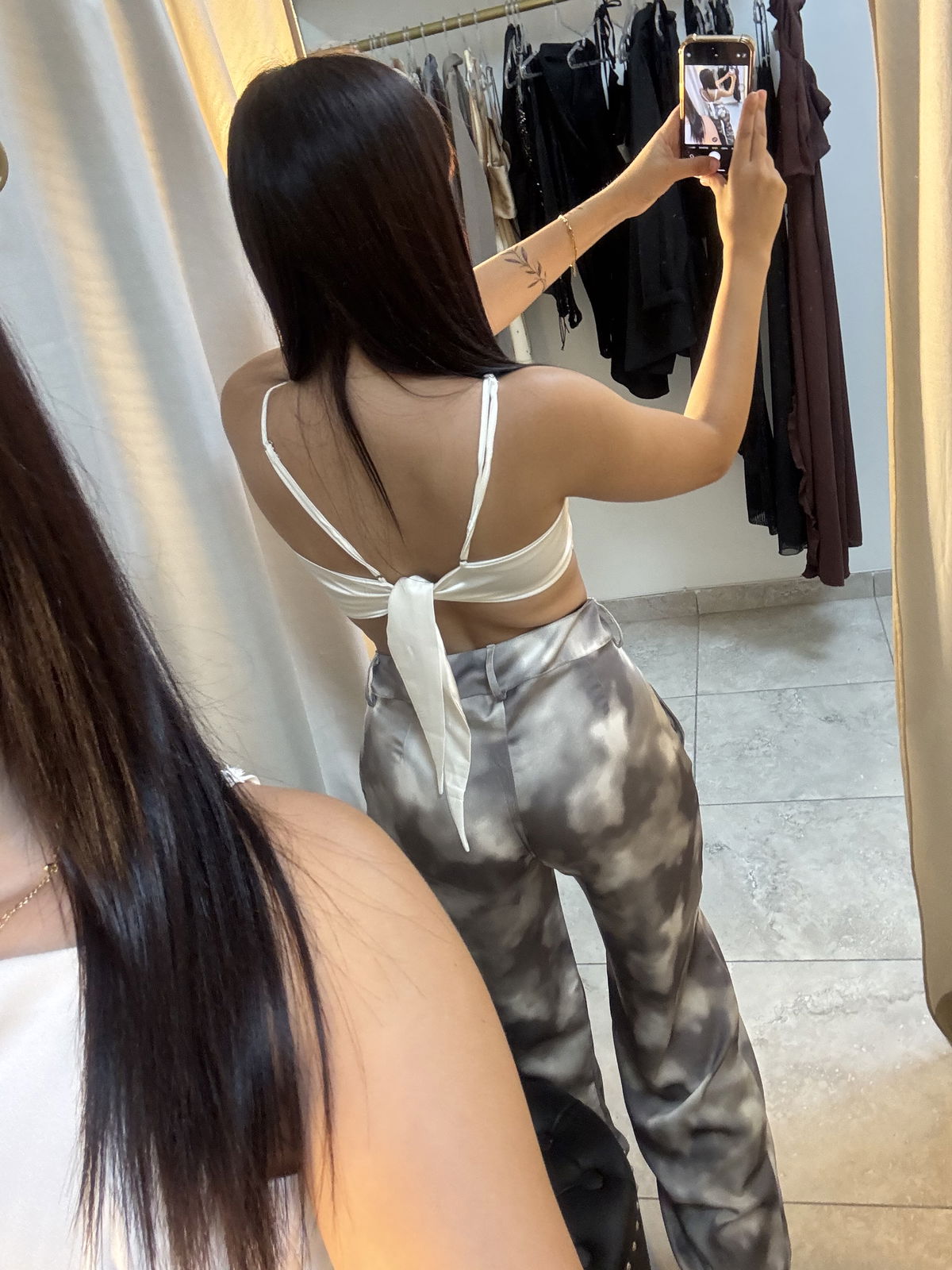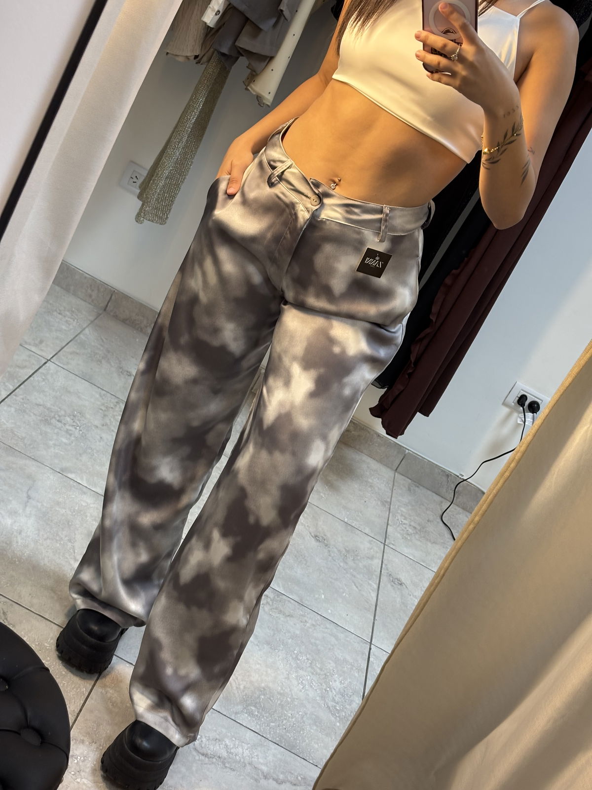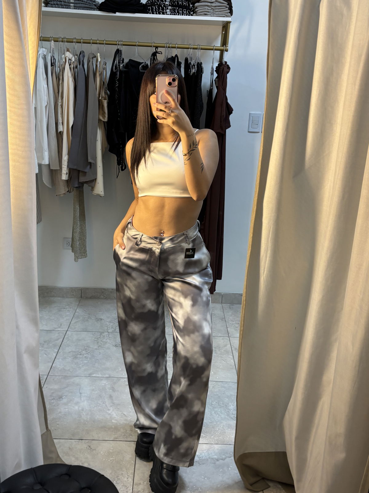 Un pantalón de satén súper liviano, con una caída impecable que estiliza al instante. El estampado aporta un toque único y elegante, ideal para looks de día o noche. Es cómodo, fresco y queda divino con tops básicos, camisas o musculosas al cuerpo.