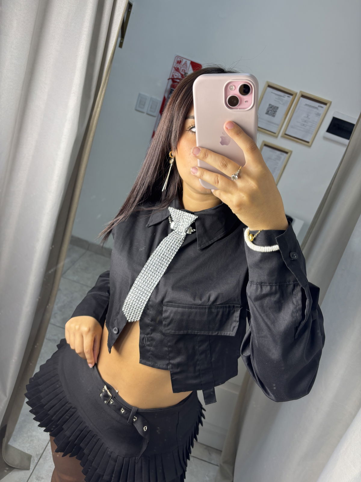 Esta camisa crop es ese básico con personalidad que transforma cualquier look en algo mucho más interesante. Su diseño corto realza la silueta y el bolsillo estilo cargo le aporta un detalle urbano y moderno que marca la diferencia.