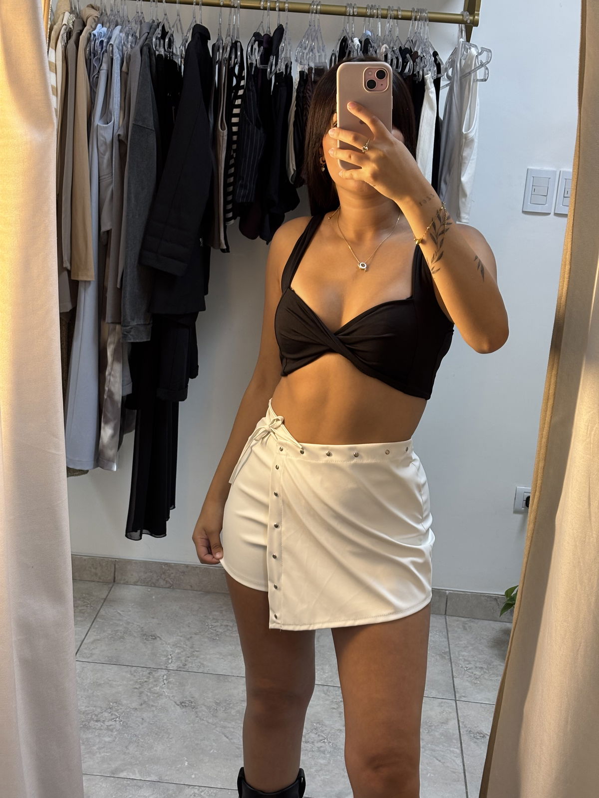 Un hit total. Este short pollera engomado combina comodidad, onda y un estilo súper canchero gracias a sus tachas delanteras. El material engomado es elastizado, por lo que se adapta muy bien al cuerpo y realza la figura sin perder comodidad.