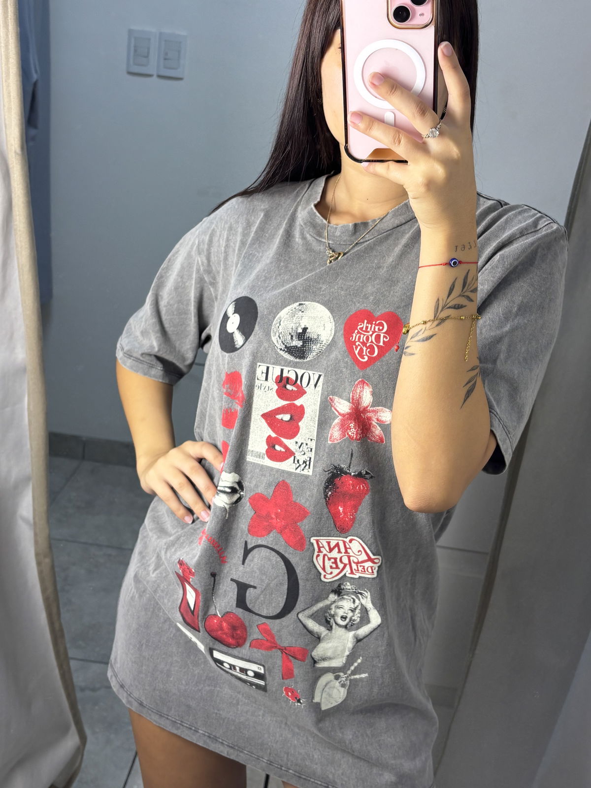 Remerón confeccionado en tela de algodón, suave y cómoda para el uso diario. Presenta estampa y calce estilo oversize, ideal para un look relajado y canchero.