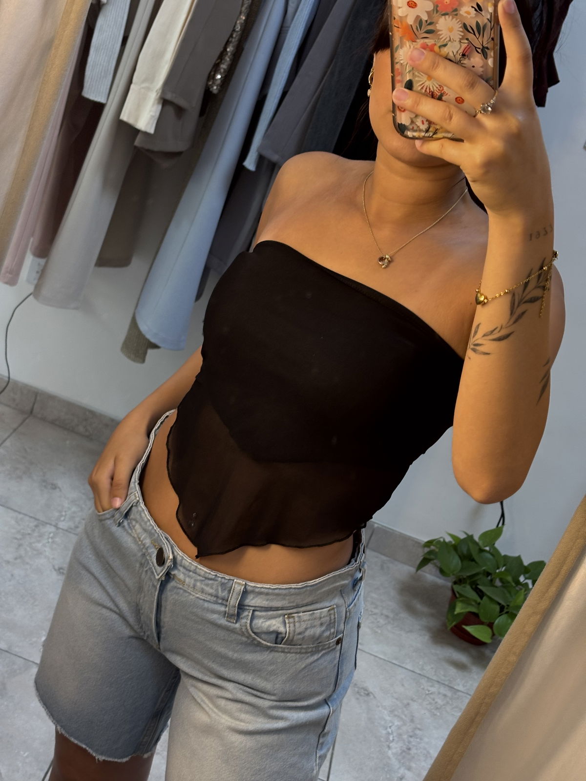 Delicado, sensual y súper canchero. Este top estilo strapless de tul es ideal para looks de noche o para usar superpuesto. Se adapta al cuerpo y realza el busto sin perder comodidad 💫