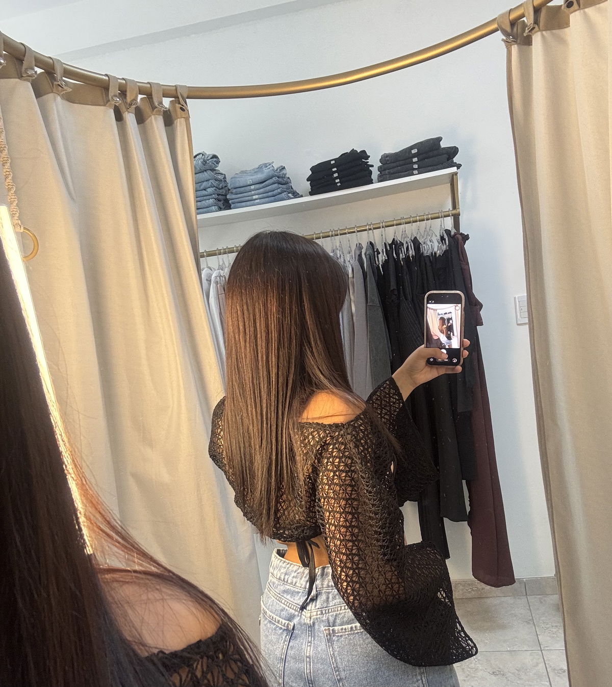 La capa que levanta cualquier look sin esfuerzo. Confeccionada en estilo crochet, esta prenda destaca por sus mangas murciélago, que aportan caída, movimiento y un aire relajado pero súper trendy.